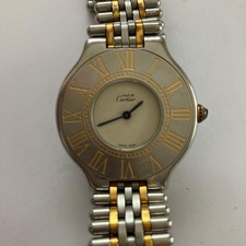 Cartier Must 21 Silver Gold Stainless Steel White Dial Ladies Watch Accessories