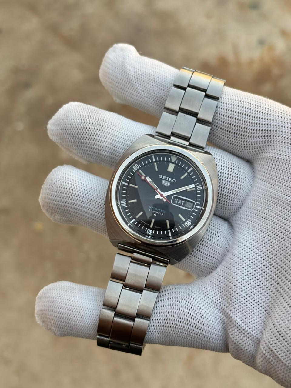 Hey Watchexchange, Up for sale is a clean vintage Seiko 5 Sports automatic with a sharp black dial, day-date, and original bracelet. Nice sporty look with that classic retro case shape. **Production date:** August 1977 (serial starts with 78) Good overall condition with normal wear for its age, caseback ref: 6319-6000. $5175 — worldwide shipping included