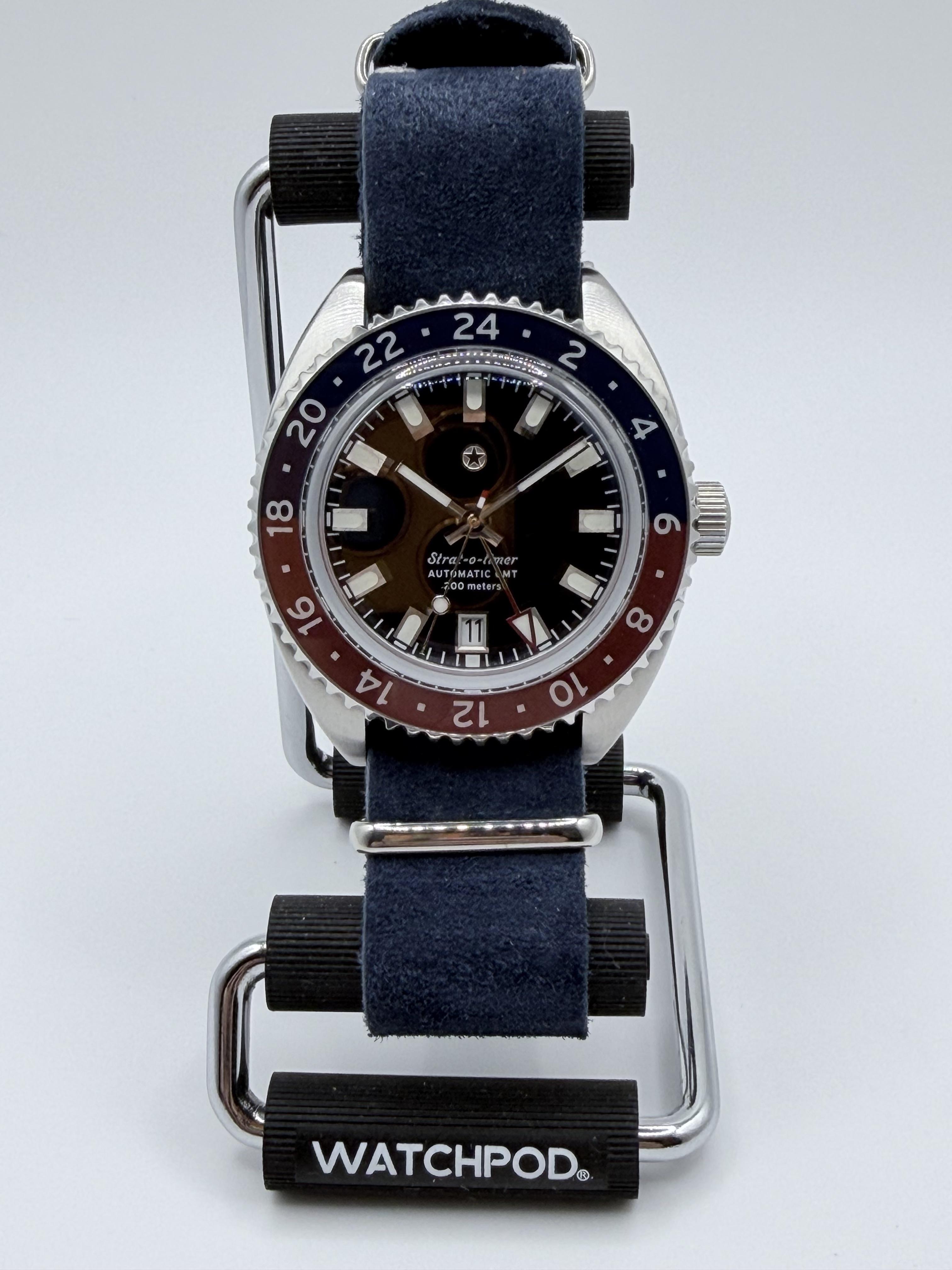 Hi gang. Selling a Jack Mason Strat-o-timer GMT. Very desirable blue/red, V2 with 6 o’clock date and sapphire bezel. Comes full kit with unworn OEM 7 link bracelet, as well as this beautiful brand new custom suede blue strap (sorry, not sorry). Was worn a couple times on a different WOE Explorer strap which I’m keeping. The hardness coating is phenomenal and no marks to note. $850 shipped CONUS. No trades. Zelle, Apple Cash, Cash App or Wise. Kindly review my transaction history. Know you get ...