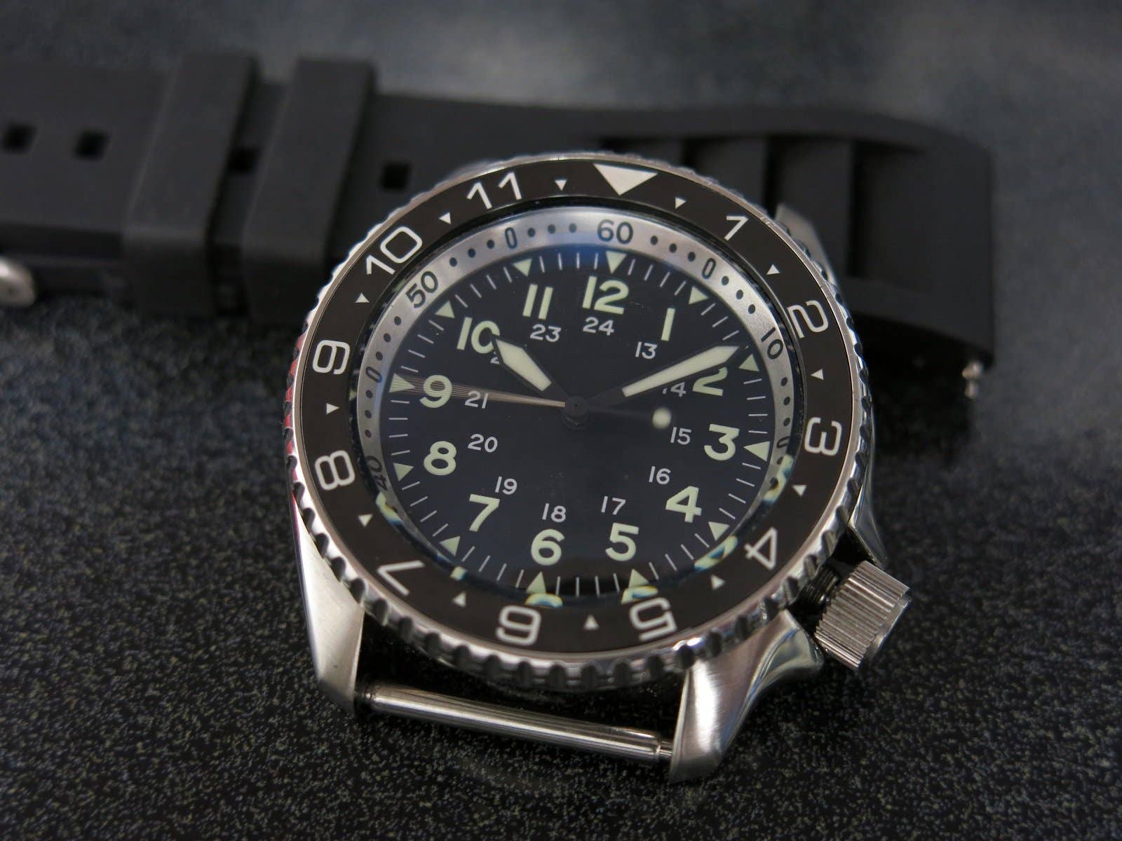 This is a special Seiko SKX project with several different upgrades: OEM Seiko SKK case 200m WR 41mm Smooth sterile caseback Drilled through lugs 22mm wide Domed Sapphire Crystal New OEM Seiko 7s36 movement no hacking or handwinding Namoki military dial with C3 lume Tokey lab pilot hands with C3 lume lumed ceramic bezel insert Special chapter ring insert The watch is in very good condition with little wear on the case. The 7s movement runs perfectly and keeps good time, within a few seconds p