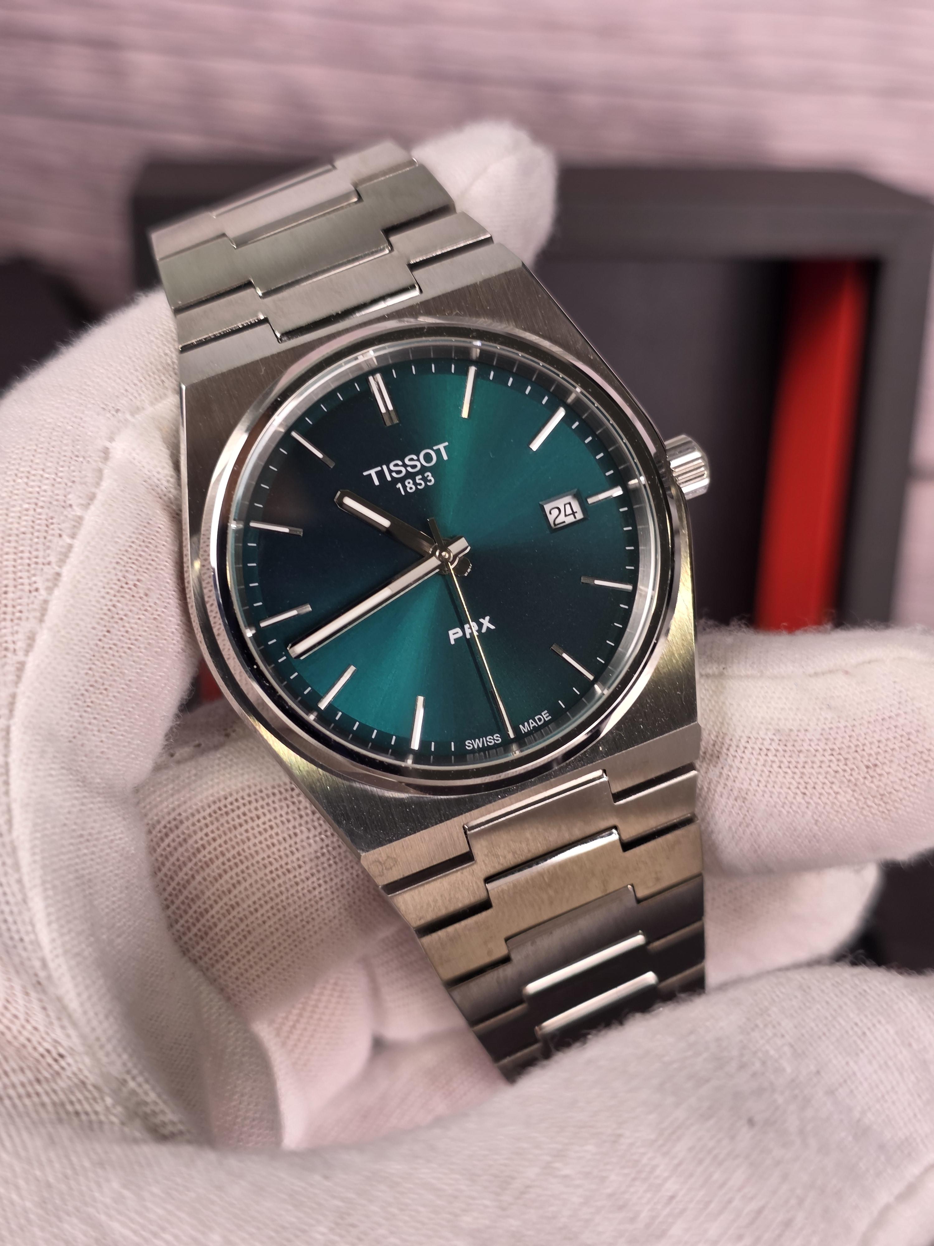 Tissot PRX Quartz Teal 40mm Great Pre-owned Condition Case: Minimal wear Bezel: Minimal wear Bracelet and Clasp: Minor wear Crystal: Clean Box, booklets, and hangtag included (no card) $250 + shipping --- Add $ for label — Ships from NJ (CONUS only) Zelle preferred, PayPal & Venmo FF accepted NJ buyers subject to sales tax Additional photos & references available upon request