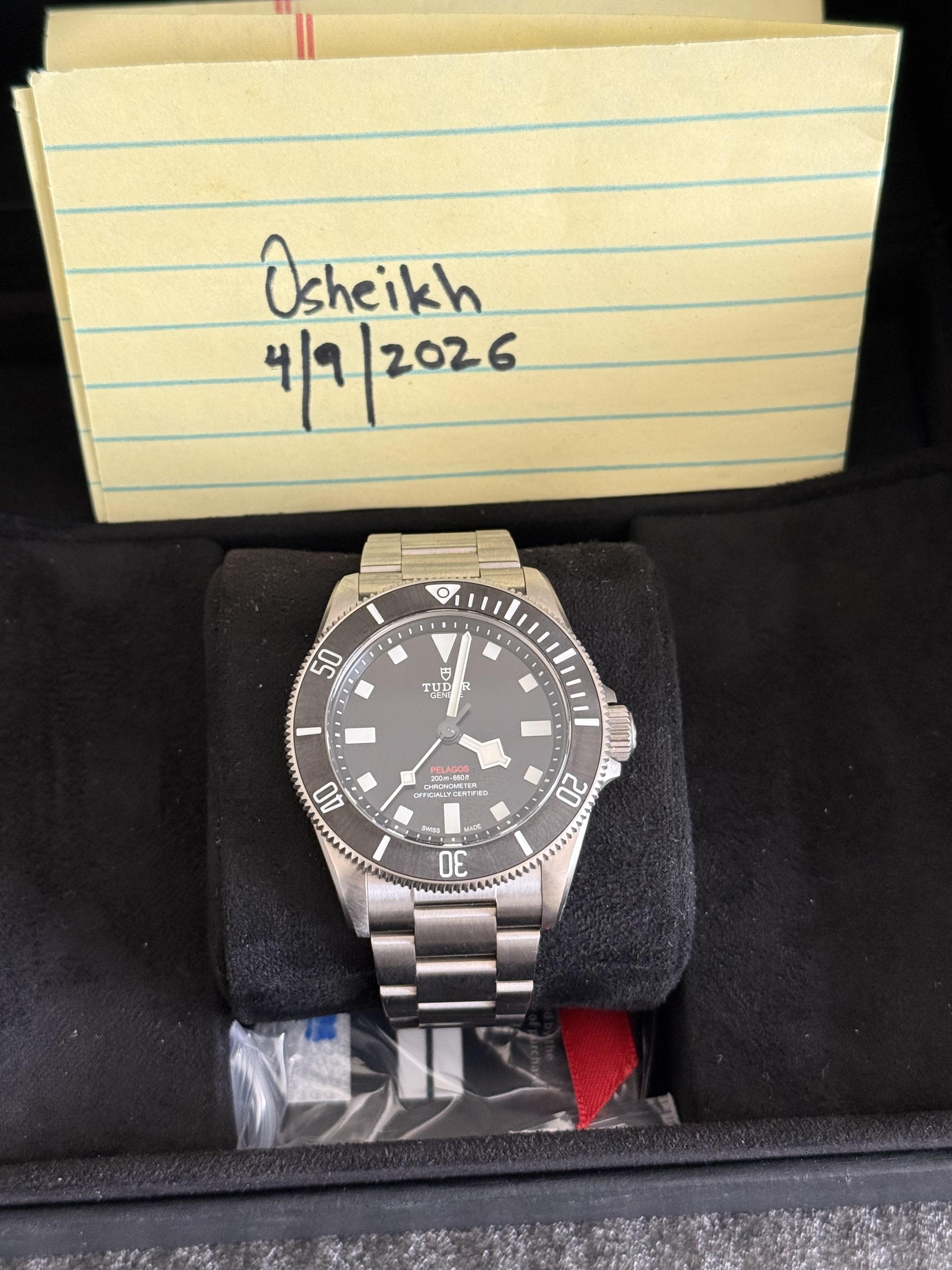 Up for sale is a beautiful 2026 Tudor Pelagos 39. Comes with box, papers, full links and extra strap. Accessories: Box & Papers PRICE: $3999 + shipping Method of payment accepted: Zelle/Wire Condition: Slightly used, clasp shows some light wear. Very clean piece otherwise. I’m located in Seattle, WA. Local face to face deals are possible. I ship fully insured nationwide. Thank you!