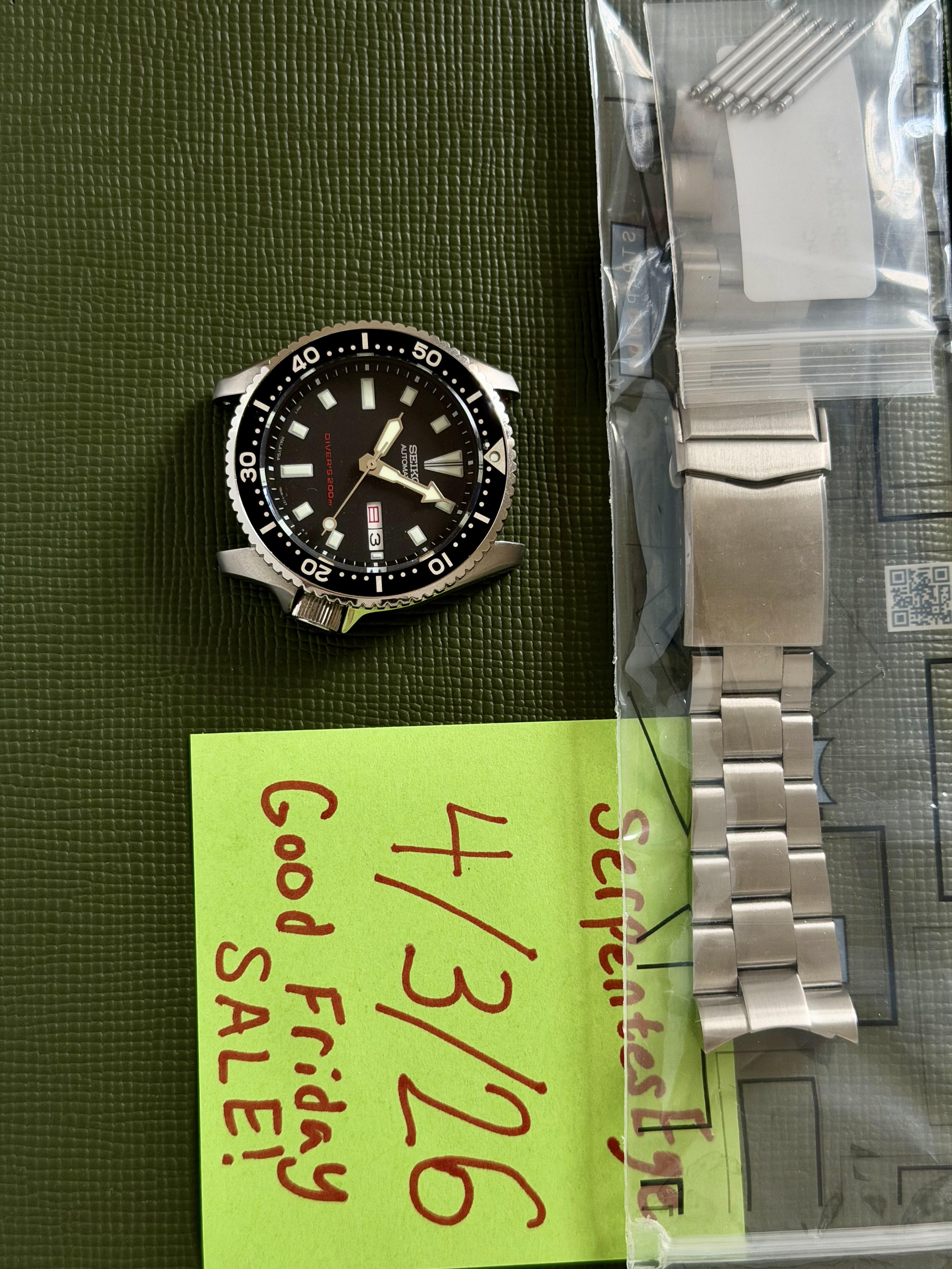 Up for sale is a custom Seiko SKX173 with a titanium case, and a stainless steel slim case back. This was worn very few times (less than 3) Price: $375 Components: • Case/Crown/Bezel: Long Island Watch Ti SKX • Caseback: Namokimods SS slim • Insert: OEM SKX173 • Crystal: Crystaltimes flat sapphire • Dial: OEM SKX173 • Hands: OEM SKX173 • Movement: OEM Seiko w/ white kanji day, white date • Strap: Brand New Strapcode Oyster Bracelet (Super-O Boyer) V-Clasp Button Double Lock(co...