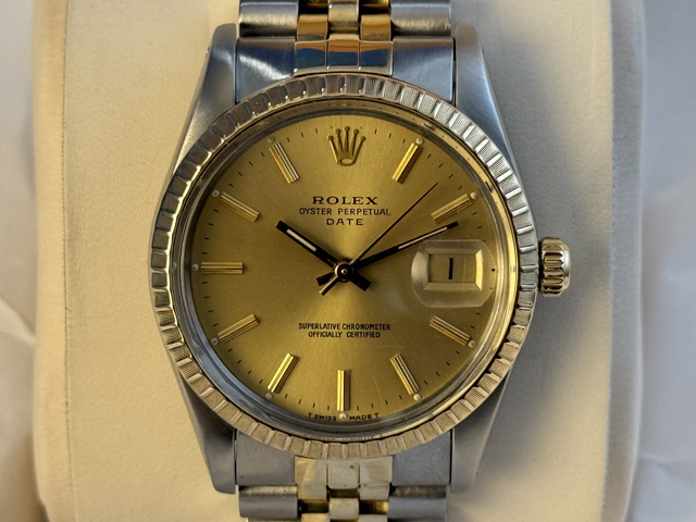 FS: Men's ROLEX Date 15053 6.7 million 1981, Champagne, I4 K Gold & Steel, Jubilee bracelet.