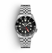 Seiko 5 GMT Automatic Men's Wristwatch Black Dial Stainless Steel Bracelet