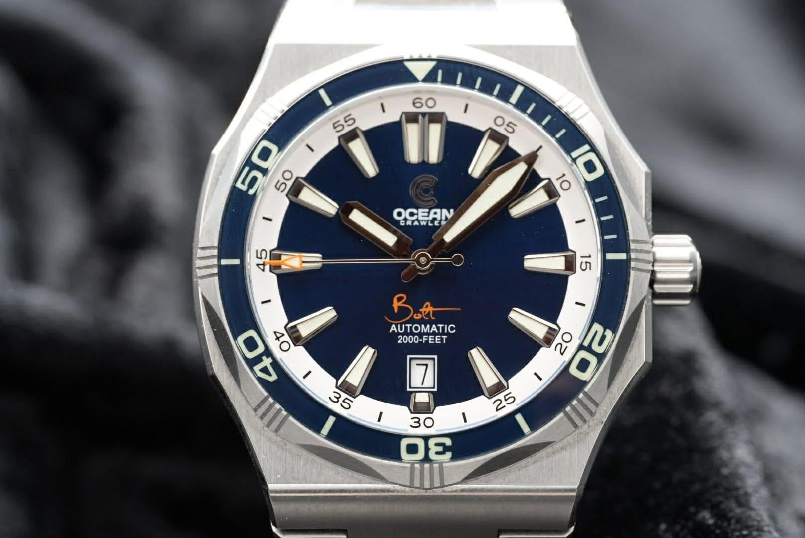 Ocean Crawler Bolt Blue — limited to about 100 pieces in this color. Full set, worn once, near-mint condition. Comes on the integrated bracelet and includes a custom leather strap. Slim for a 600m diver at 12.3 mm, with a 42 mm case and 48 mm lug-to-lug so it wears pretty well overall. Sapphire bezel with lume and a Sellita SW200-1 inside. Specs: • 42 mm case • 12.3 mm thickness • 48 mm lug-to-lug • 316L stainless steel • Sapphire bezel insert (lume) • Sellita SW200-1 automatic (28,800 ...