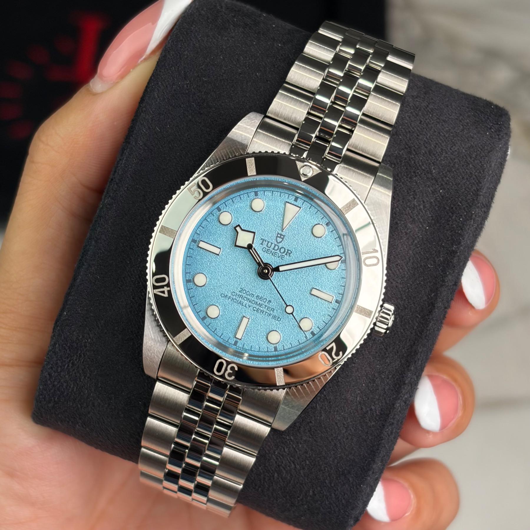 Timestamp: https://imgur.com/a/GtiQ9Kg Album: https://imgur.com/a/s29ibmI ________________________________________________________________________________________ The Tudor Black Bay 54 “Lagoon Blue” 79000 (2026) offers a fresh and vibrant take on Tudor’s vintage-inspired dive watch, featuring a striking light blue dial that adds a modern, playful edge to the classic design. Its compact 37mm case stays true to the proportions of early dive watches, while the clean bezel and signature snowflake...