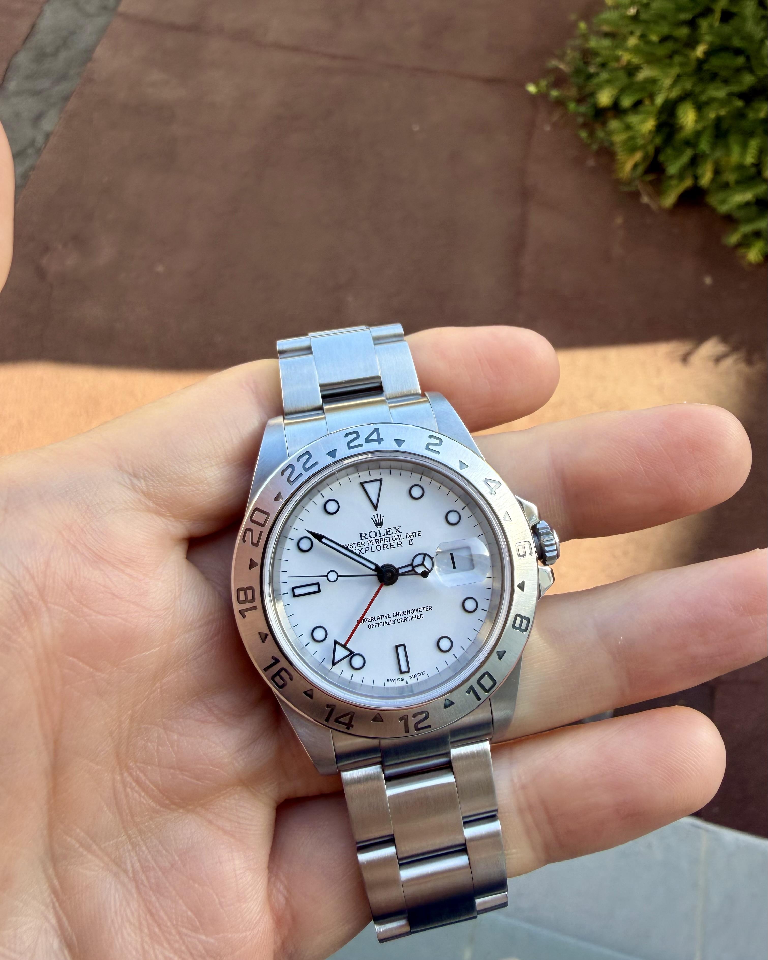 Up for grabs today is this very nice **Rolex Explorer II Polar** (ref. 16570), with box and papers from 2003. This is a very nice example, in excellent condition. For me, this is the perfect Explorer II, with the original 40mm case size. Comes in excellent condition, and was serviced approx. 2 years ago, and is running nicely when tested. It comes with the inner + outer box, papers, tag, and booklets. **Price: $9,200.** I have been a trusted seller on Reddit since 2018, and can provide positi...