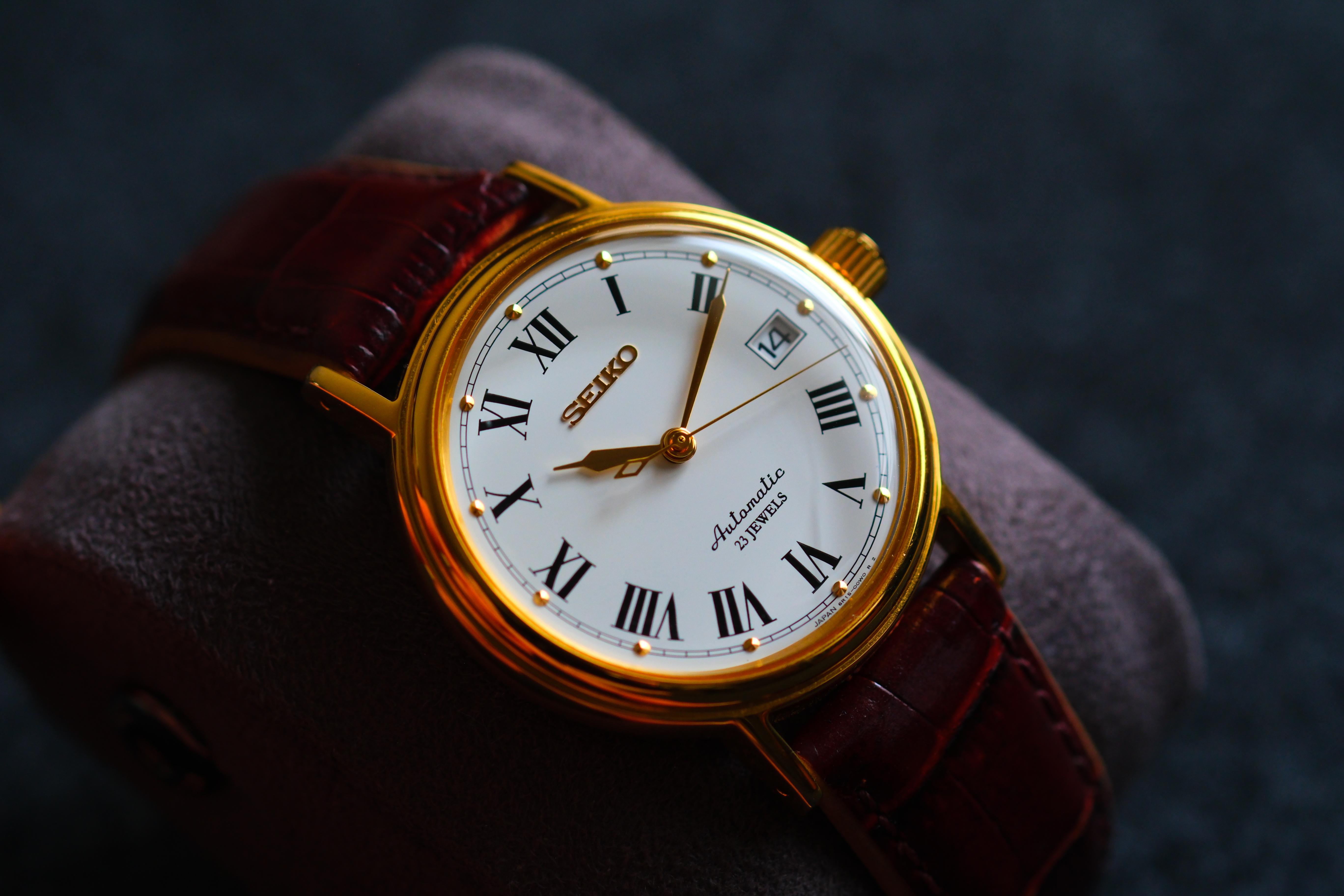 **Up for Sale** This is a rather rare SARB044, known for its distinctive “Carson” dial, often referred to as the “Seiko Cartier.” The watch is in excellent condition, featuring a beautiful combination of gold tones on the case and hands, paired with a Roman numeral dial inspired by Cartier, creating a truly elegant and refined look. The watch comes with its original Seiko bracelet, and it will also include an unused brown leather strap for versatility. **TimeStamp:** [https://imgur.com/a/EZqDV...