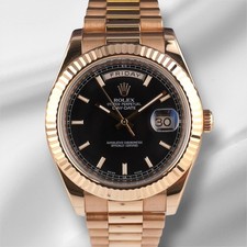 Rolex 41mm President Day-Date II Rose Gold Black Dial Men's Watch 218235