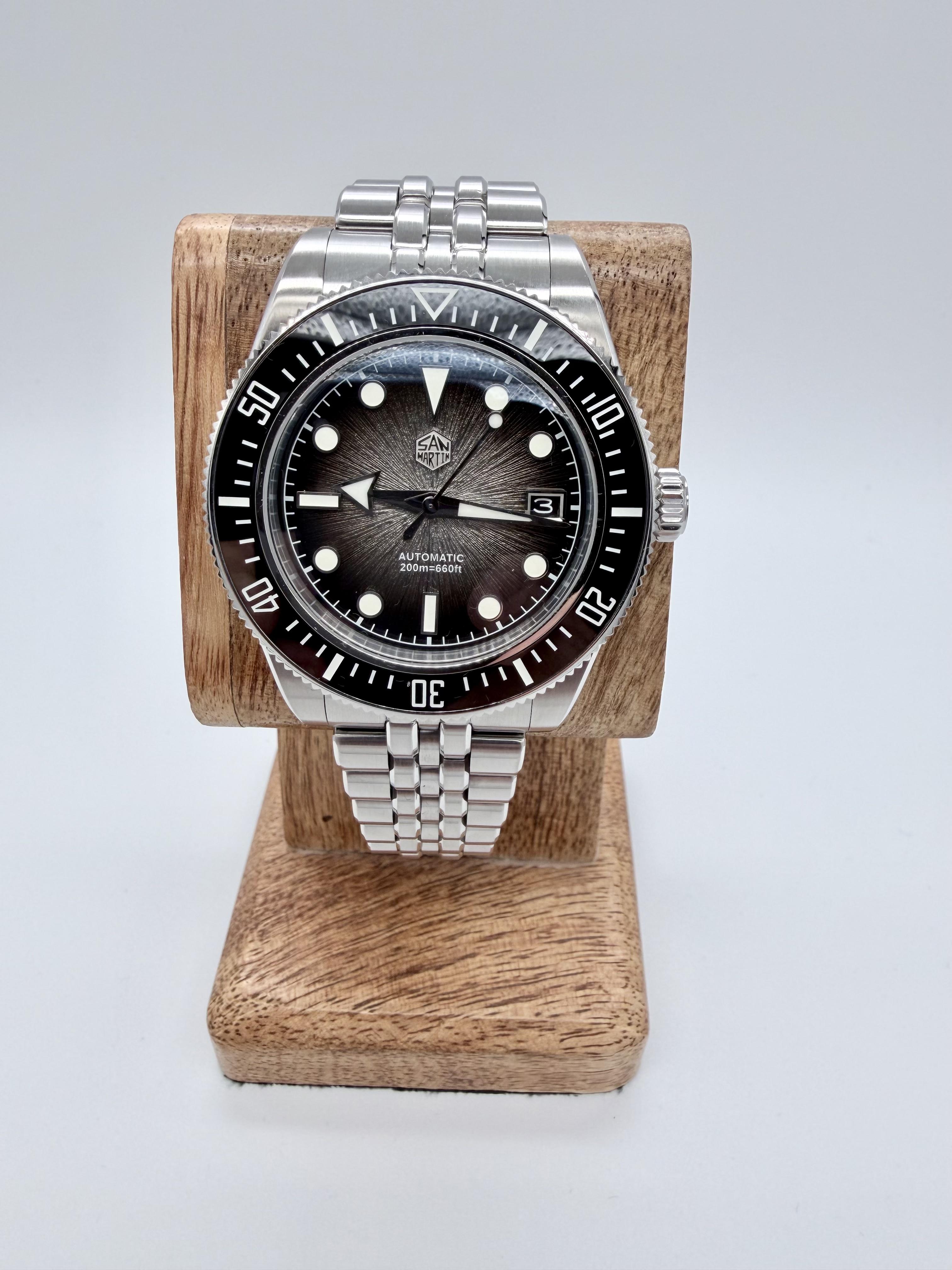 Up for sale is my San Martin SN0148, featuring a stunning black fume enamel dial paired with a black bezel. This is one of San Martin’s standout models with excellent finishing, solid wrist presence, and great everyday wearability. Condition: Excellent / near-new condition. Keeps time well and functions perfectly. Specifications: Model: SN0148 Case Material: 316L Stainless Steel case Size: 40mm Movement: Automatic (Miyota 9000) Crystal: Sapphire with AR coating Bezel: Unidirectional...