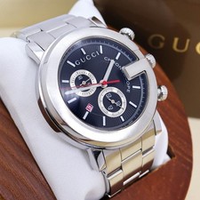 Gucci 101M Quartz Watch Silver Black Working New Battery Cleaned Box Papers 48mm