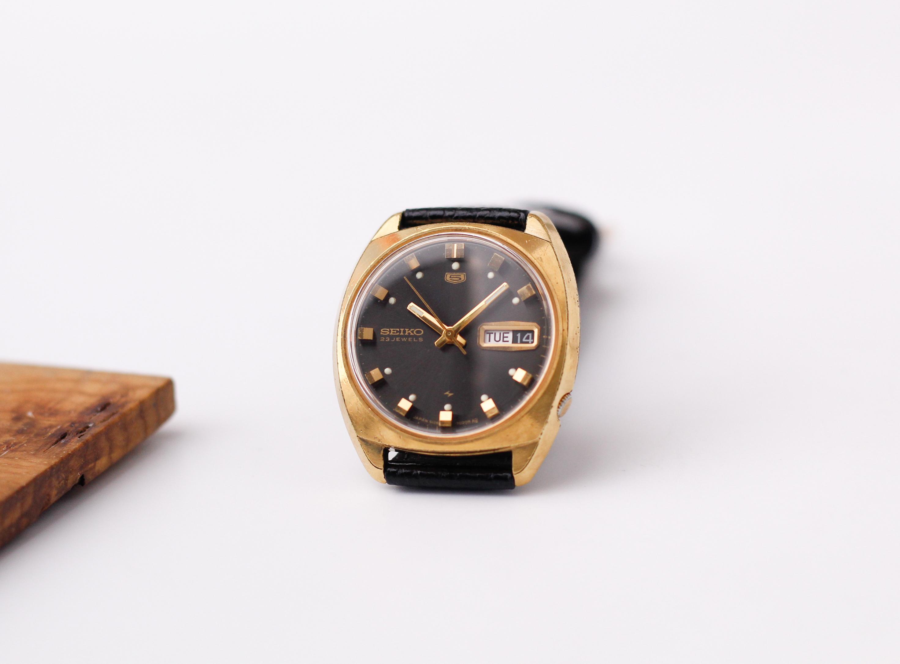 Timestamp: [https://imgur.com/a/oQusfvS](https://imgur.com/a/oQusfvS) *1969 Seiko Automatic REF: 5126-7000* *This watch features a beautiful charcoal sunburst dial paired with gold toned indices and hands* *Powering this watch is a Seiko 5126 23-jewel automatic movement which provides great reliability, and a day-date with quick-set for the date and semi quick-set for the day.* *Housing the watch is an amazingly comfortable and stunning gold toned case that is a dream to wea...