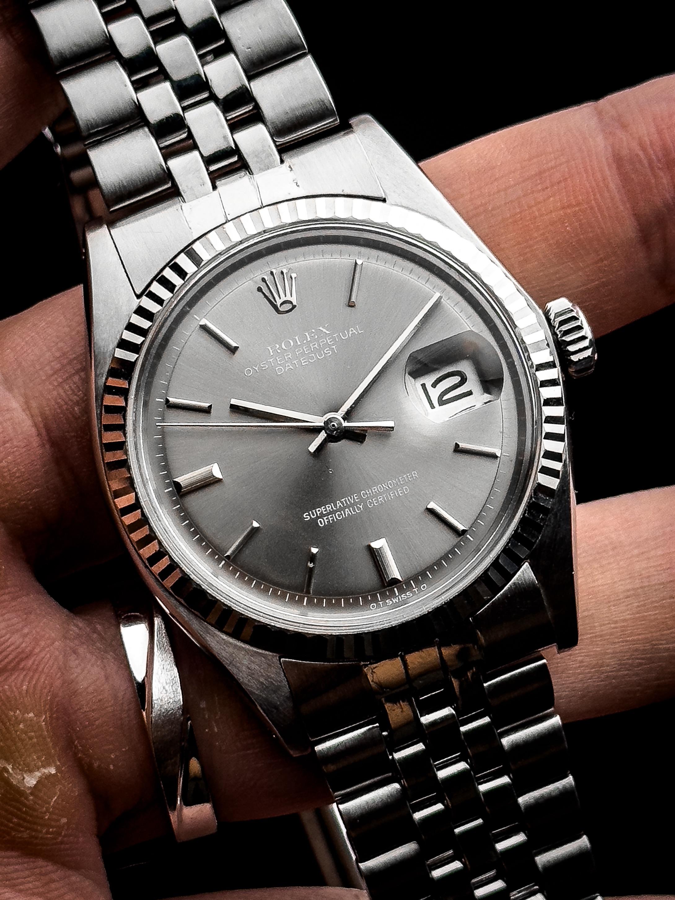 Up for sale is the 1973 Rolex Datejust “Silver Sigma Dial” Ref.1601 in great serviced condition. Images: https://drive.google.com/drive/folders/1_uBrw0_THQVCebT5_QM0-yiGBMR39ULq Video: https://drive.google.com/file/d/1s-nQIBWoQJEthfqtjTzyRcQwerQEQ4kO/view?usp=drivesdk Timestamp: https://drive.google.com/file/d/1GRp33wVxU21uJ-d7tS9M6lB4iyxbtPX3/view?usp=drivesdk The Rolex Datejust has always been one of those watches that doesn’t need much introduction. Since its launch in 1945, it has quietl...