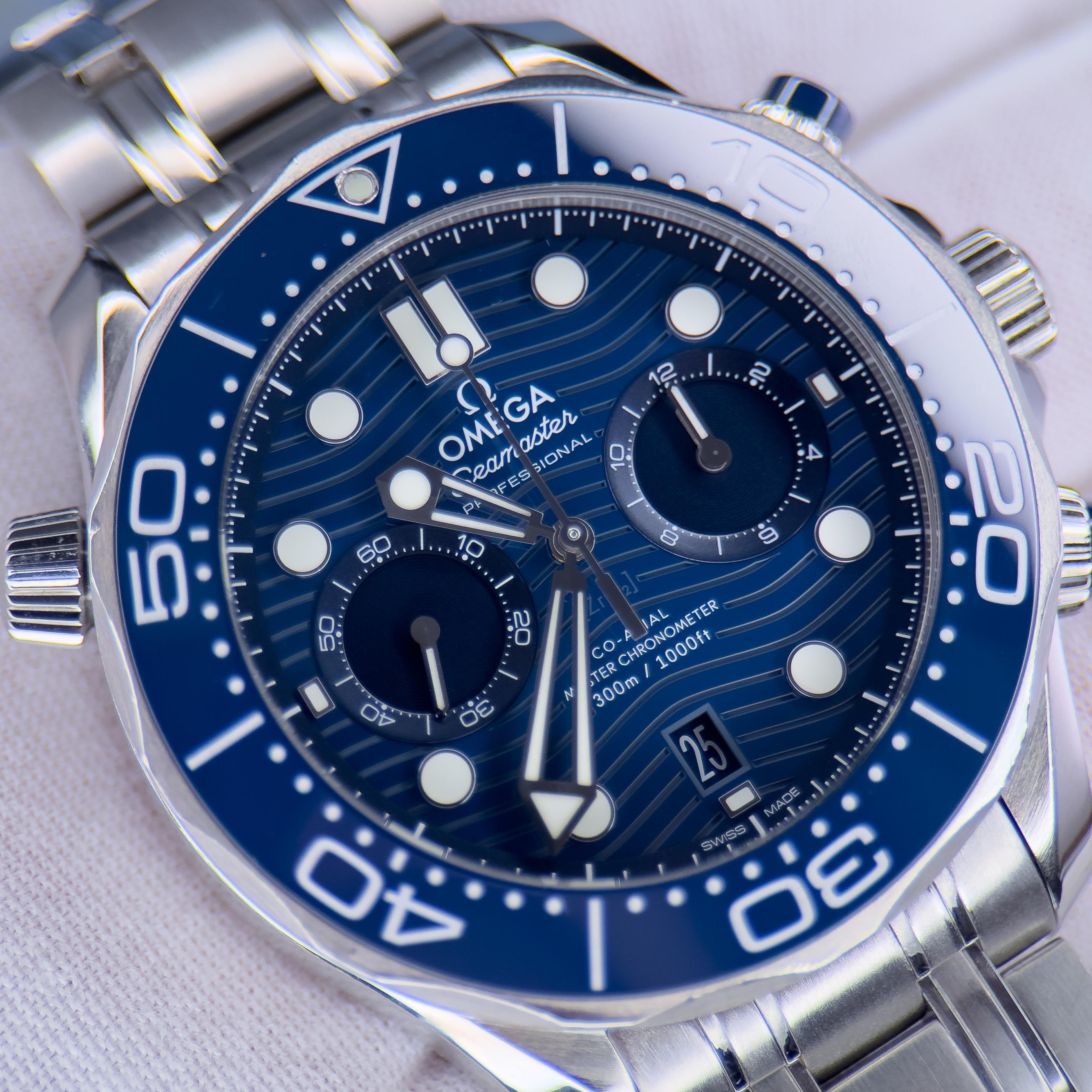 Timestamp: [https://imgur.com/a/vB9WfvY](https://imgur.com/a/vB9WfvY) Omega Seamaster Diver 300M Chronograph Blue Dial 44mm – Ref. 210.30.44.51.03.001 Offered for sale is the Omega Seamaster Diver 300M Chronograph featuring the striking blue ceramic dial and matching blue ceramic bezel. This 44mm professional dive chronograph is powered by Omega’s in-house Co-Axial Master Chronometer movement and combines serious technical performance with Omega’s iconic modern Seamaster design. The wat...