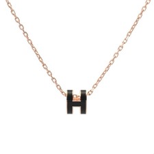 HERMES Ladies Necklace Black Rose Gold Hardware Enamel from JAPAN