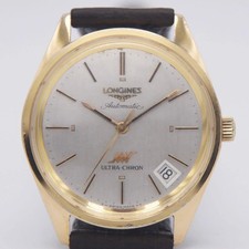 Longines Ultra Chron Auto Watch Silver Color Dial Gold Case 35.5mm Date Vintage