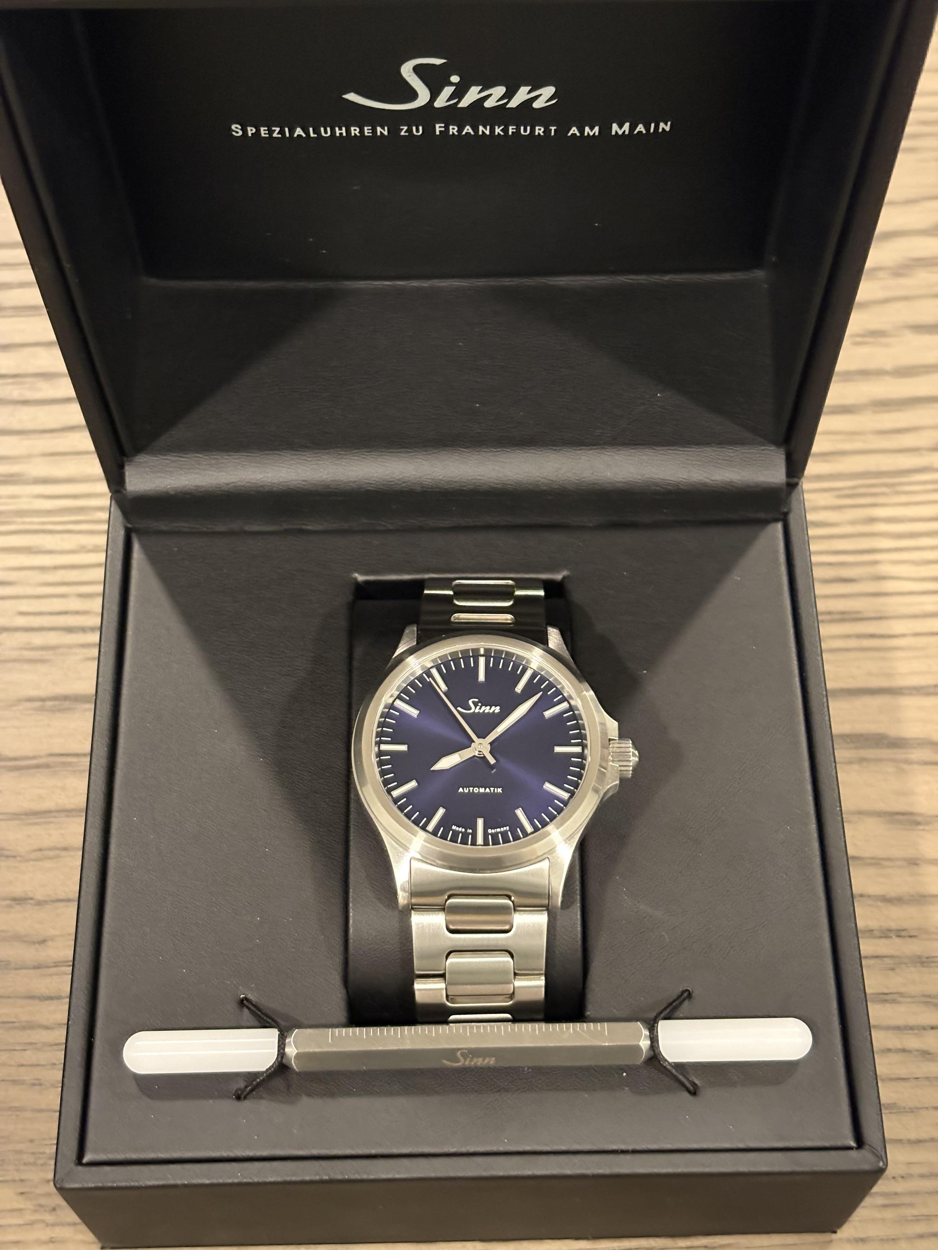 Selling my Sinn 556i Blue, Full Set. Like New and truly excellent condition. The ultimate GADA watch, the blue dial hits in that summer sun. Card is dated 2024 (silver rotor) worn lightly 4x only. H-Link Bracelet purchased in April 2026 from WatchBuys as I wanted the new OTF clasp (paid $640, crazy). Asking $1,650 shipped CONUS, No Trades Please - Downsizing. * Watch diameter (mm): 38.5 * Lug width (mm): 20 * Lug to lug (mm): 45.5 * Water resistance: 200 meters * Front crystal: ...