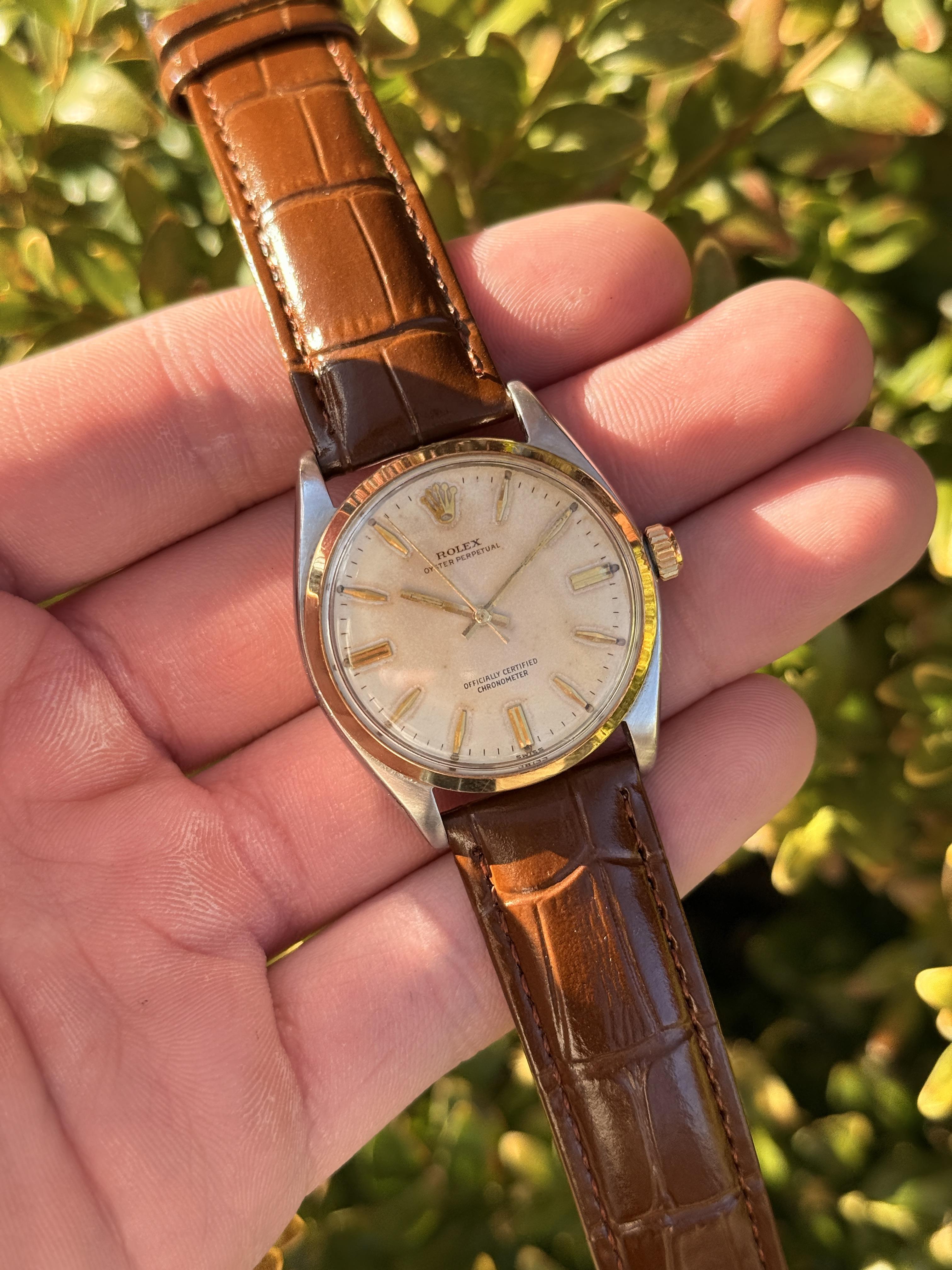 Welcome to Starry Seconds! PLEASE MAKE SURE TO COMMENT BEFORE PM. Please feel free to also check out our other listings! Up for sale is a very nice vintage Oyster Perpetual! This was previously sold at [this listing](https://www.reddit.com/r/Watchexchange/s/ASdUsiHvFx) but the buyer who left a deposit didn’t move forward due to personal matters. A really charming two-tone Oyster Perpetual with a warm champagne dial and matching gold handset and markers. The watch is in excellent cos...