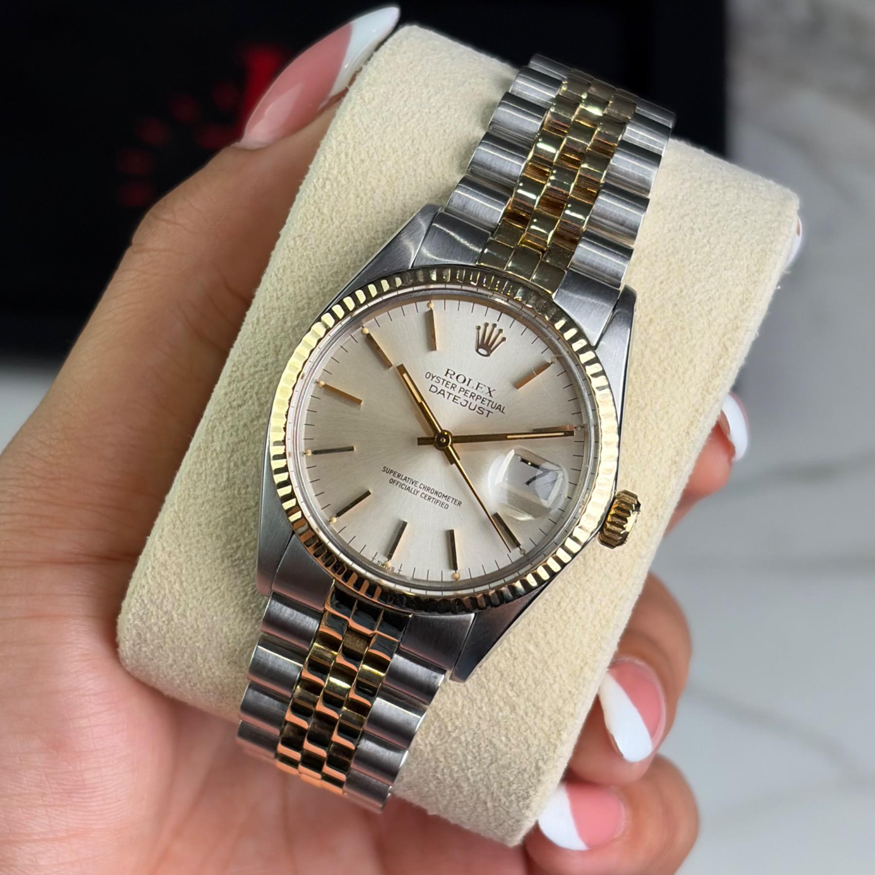 Timestamp: https://imgur.com/a/UNFYmAI Album: https://imgur.com/a/DDwOREH ________________________________________________________________________________________ The Rolex Datejust 36 16013 (1981) is a classic two-tone configuration, featuring a timeless silver dial paired with a yellow gold fluted bezel and Jubilee bracelet for a refined, vintage aesthetic. Its 36mm case offers versatile wear, while the automatic movement continues to run well. This example is in overall excellent condition ...