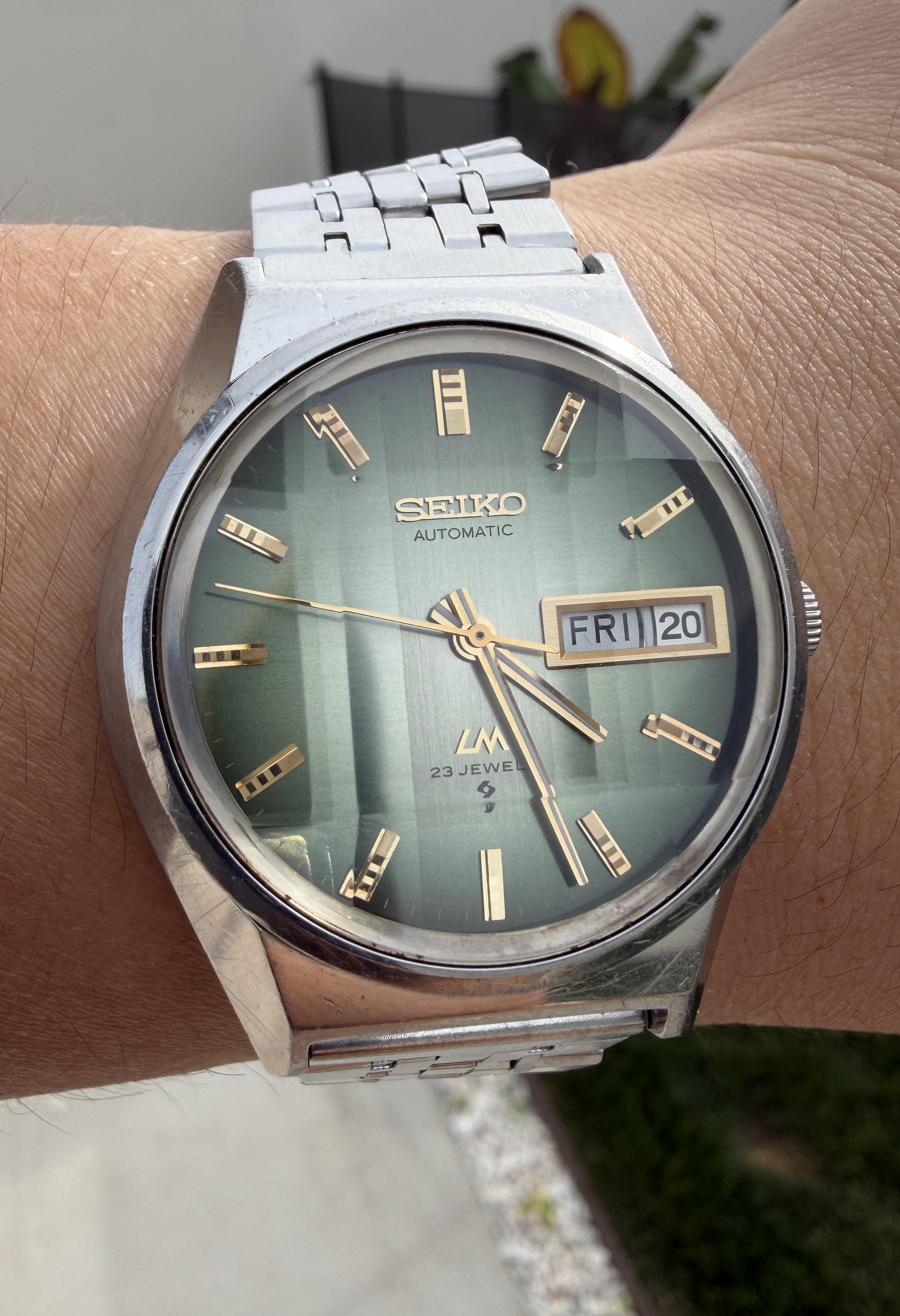 ![[WTS] Vintage Seiko Lord Matic (LM) 5606-7310 Green Gradient Stripe Dial with Faceted Crystal Raised Golden Indices](https://sxdtrcenjzhqcznhokgy.supabase.co/storage/v1/object/public/reference-images/reddit/1sec1q8.jpg)