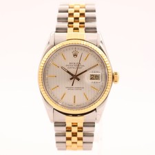 Vintage 36mm 1985 Rolex 16013 Datejust Tapestry Dial Automatic Steel & 18k Gold