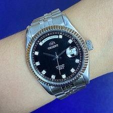 RARE Orient President Automatic Diamond Black DIal Day Date Vintage Watch 90s