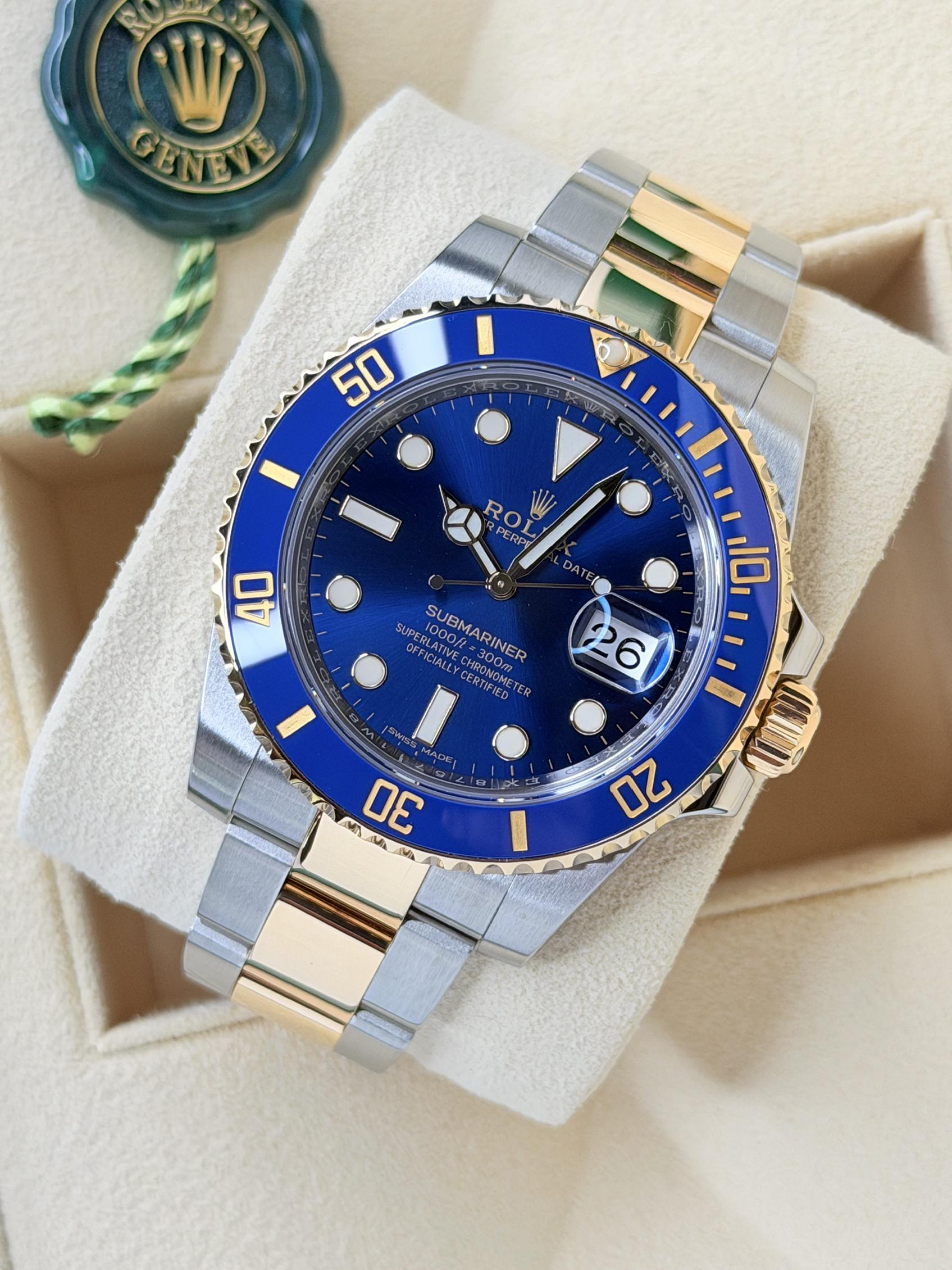 Selling this 40mm two-tone Rolex Submariner reference 116613LB / 116613 with the sunburst blue dial, also known as the Bluesy. **This Bluesy is in like-new condition**. It comes as a full set including box, outer box, manual, warranty booklet, leather wallet, warranty card dated 2019, all links, and the Rolex hangtag. **Photos:** * [Album](https://imgur.com/a/2019-bluesy-lFVRRr8) * [Timestamp](https://i.imgur.com/S3tKG1S.jpeg) * [More on my Instagram @SolanaWatches](https://www.ins...