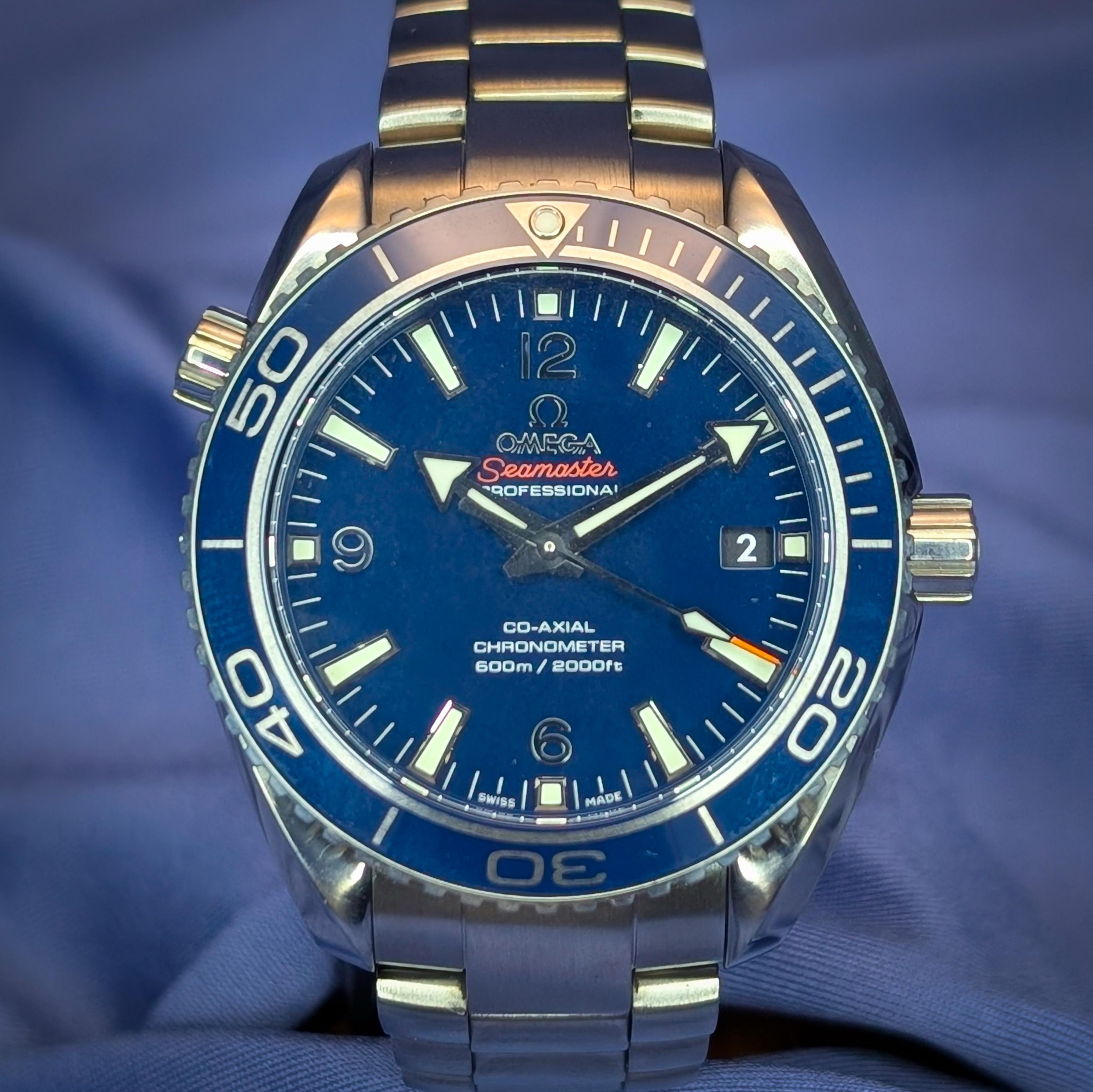 Omega Seamaster Planet Ocean 600m, 232.90.42.21.03.00, 42mm with titanium case and bracelet, blue dial and bezel, box & papers Timestamp: https://imgur.com/a/2e9OJ6q New to Reddit. Let's Zoom/Facetime, exchange socials/driver's licenses, etc. to help you feel comfortable with who I am and my trustworthiness. Here's your chance to own this stunning Omega Seamaster Planet Ocean 600m 42mm with titanium case, blue dial, titanium bracelet, and box & papers. Experience Omega's classic dive watch w...