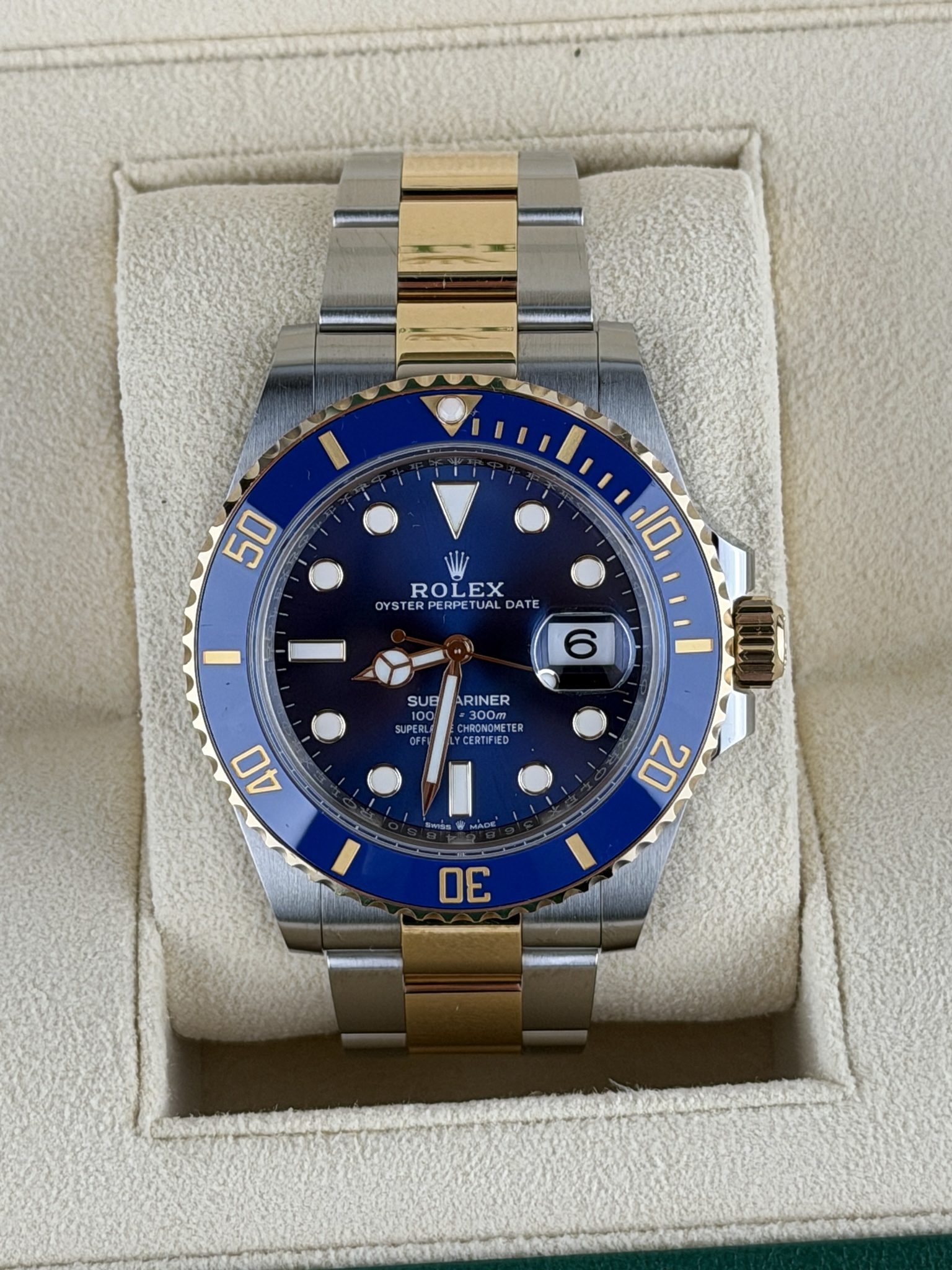 Up for sale is my Rolex Submariner Date 116613LB, better known as the “Bluesy.” This is the classic two-tone Submariner featuring the blue sunburst dial and matching ceramic bezel. An absolute icon in the Rolex lineup and one of the best looking two-tone sports watches ever made. The watch is in excellent condition with minimal signs of wear. Case, crystal, bezel, and bracelet all present extremely well. Any minor signs of handling are consistent with careful ownership and are best judged from ...