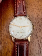 Tudor Gold Plated Mechanical Wristwatch Brown Leather Strap Sub-Dial White Dial