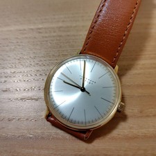 Junghans Max Bill Hand Winding Watch Silver Dial SS Brown Leather Analog Design