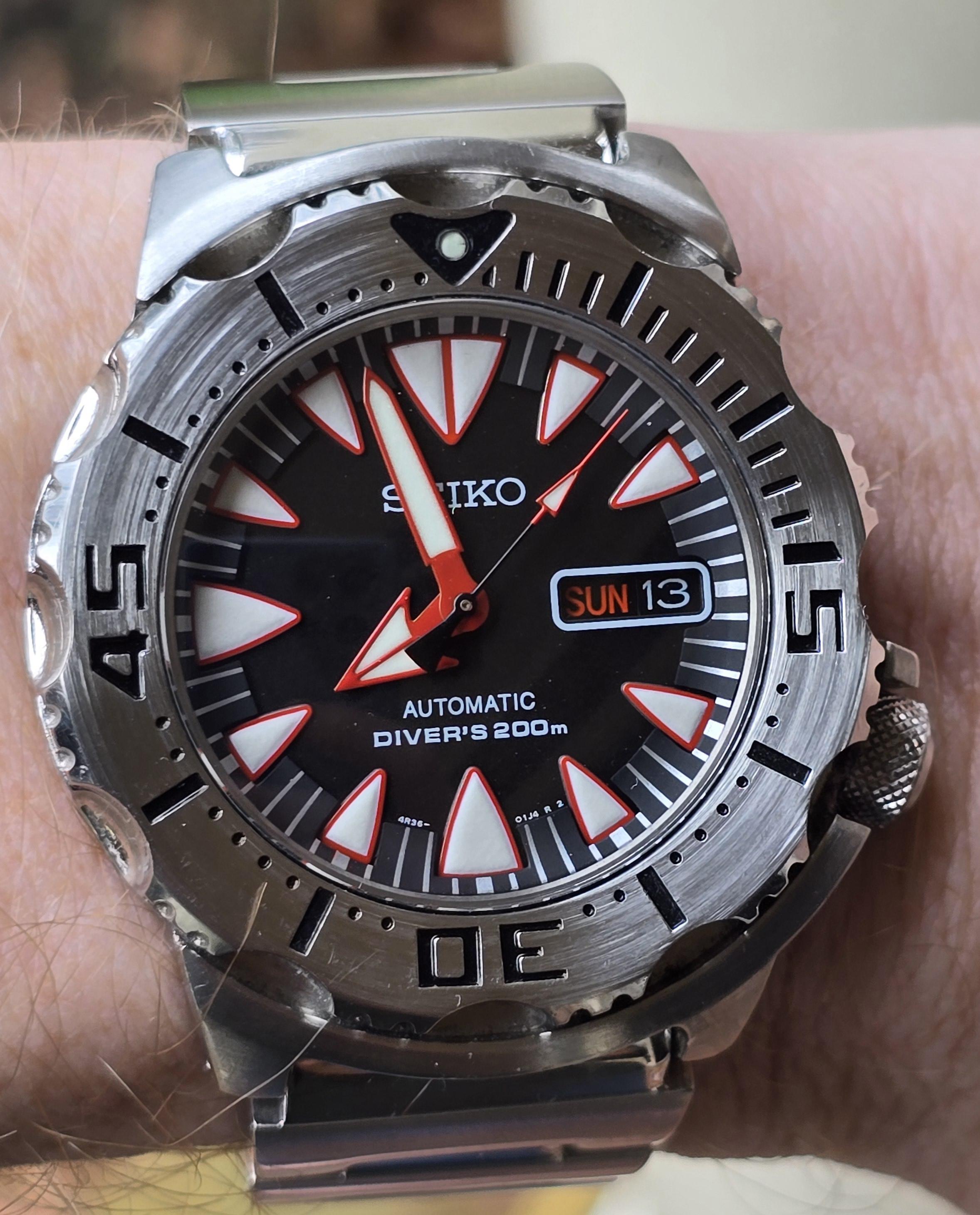 Seiko "Dracula" Monster SRP313 - Sapphire Crystal - Exc Cond - $600 This is a rare 2012 limited release, that keeps great time and is in excellent condition. I had the hardlex crystal upgraded to Sapphire and seals replaced at the same time. Watch only, but comes with additional bracelet links. $600 shipped CONUS Zelle or PayPal F&F