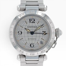 Cartier Pasha Stainless Steel 2377 GMT Bezel Silver Dial Automatic Watch