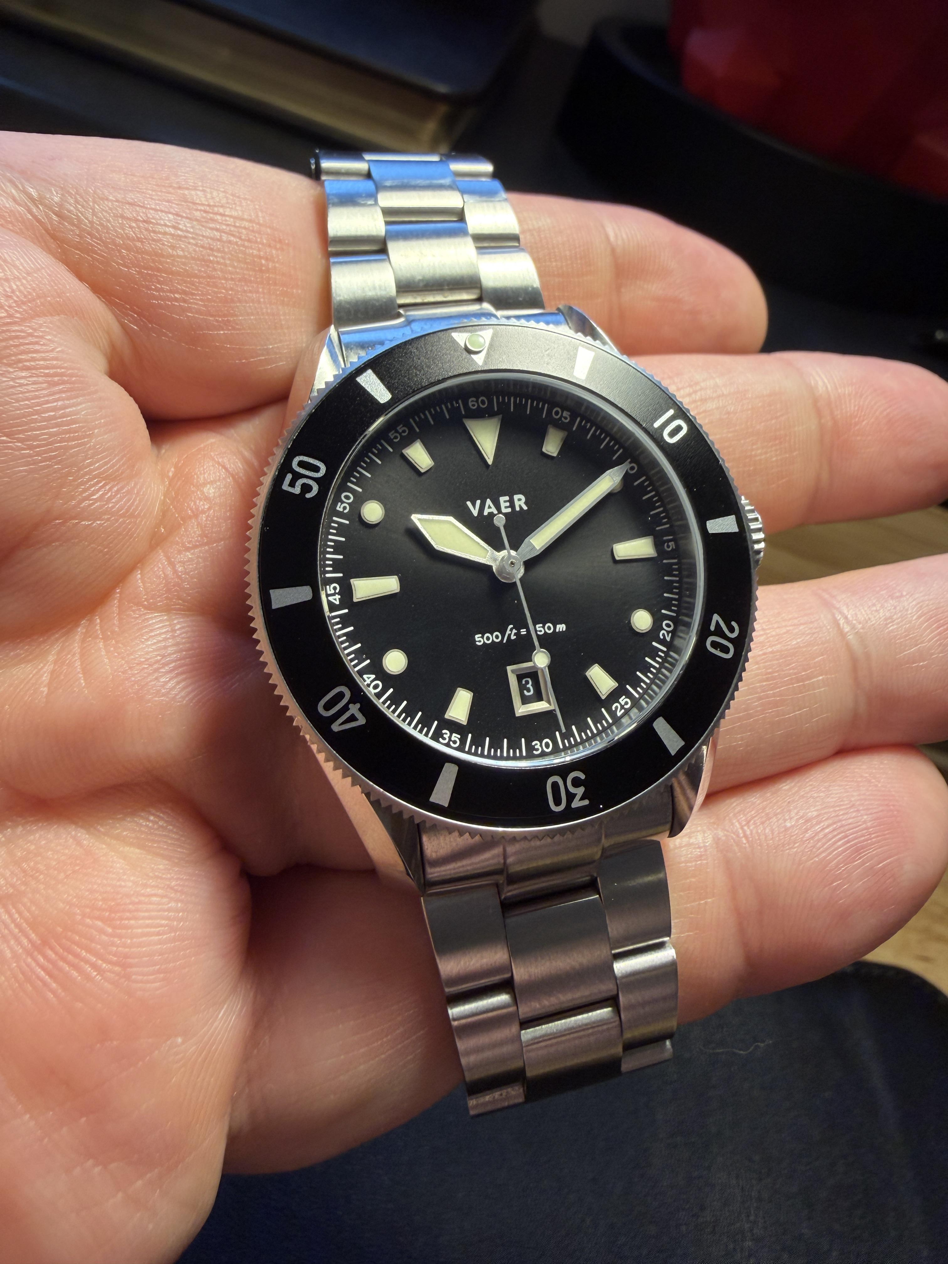 For Sale - Vaer DS2 Meridian Diver - 39mm - Black - Includes separately purchased stainless bracelet - & Includes 2 straps Price - $229 Condition - Excellent condition - Some normal wear on bracelet - Case / Crystal / and Bezel are all in very good condition. Includes - Watch - Stainless Bracelet - Tan Vaer strap - Black Vaer rubber strap - Box - Paper https://imgur.com/a/lrENvjq See photos for all included items Ships from Michigan to US (CONUS) $10 Payment - PayPal F&F or G&S (Buyer...