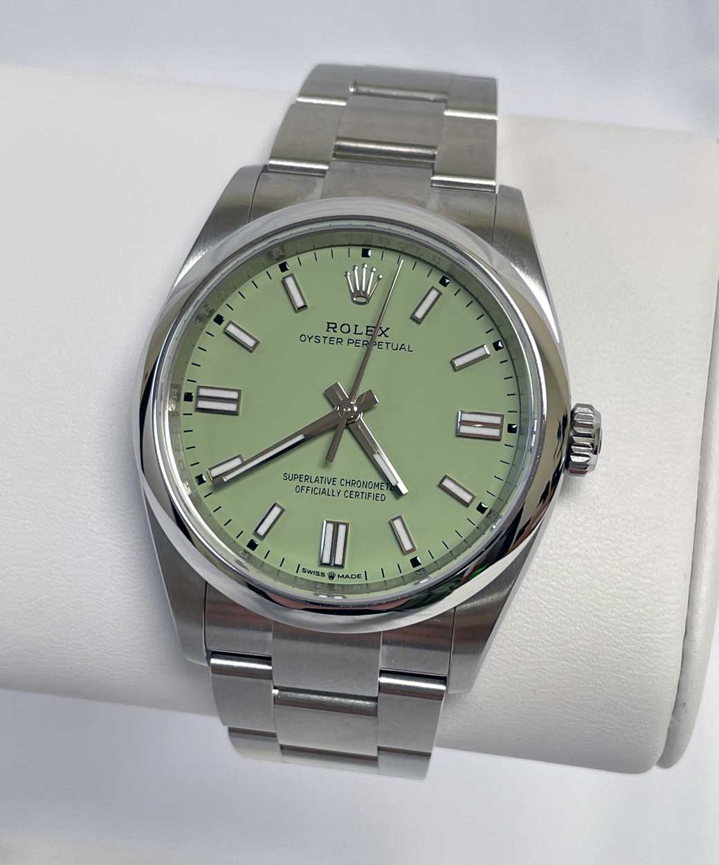 [timestamp](https://imgur.com/a/NpTredE) For sale is an unworn upsized OP36 with pistachio dial. It will be delivered as a fully complete set with all box, books, links, white tag, and 3/2026 dated Rolex warranty card. Asking $10150 Trades welcomed and preferred WW insured shipping Vince B Brick and mortar watch store w/ countless references since 2006 [vince@timepieceperfection.com](mailto:vince@timepieceperfection.com) 267-685-6488 (international please use Whatsapp) Payments...