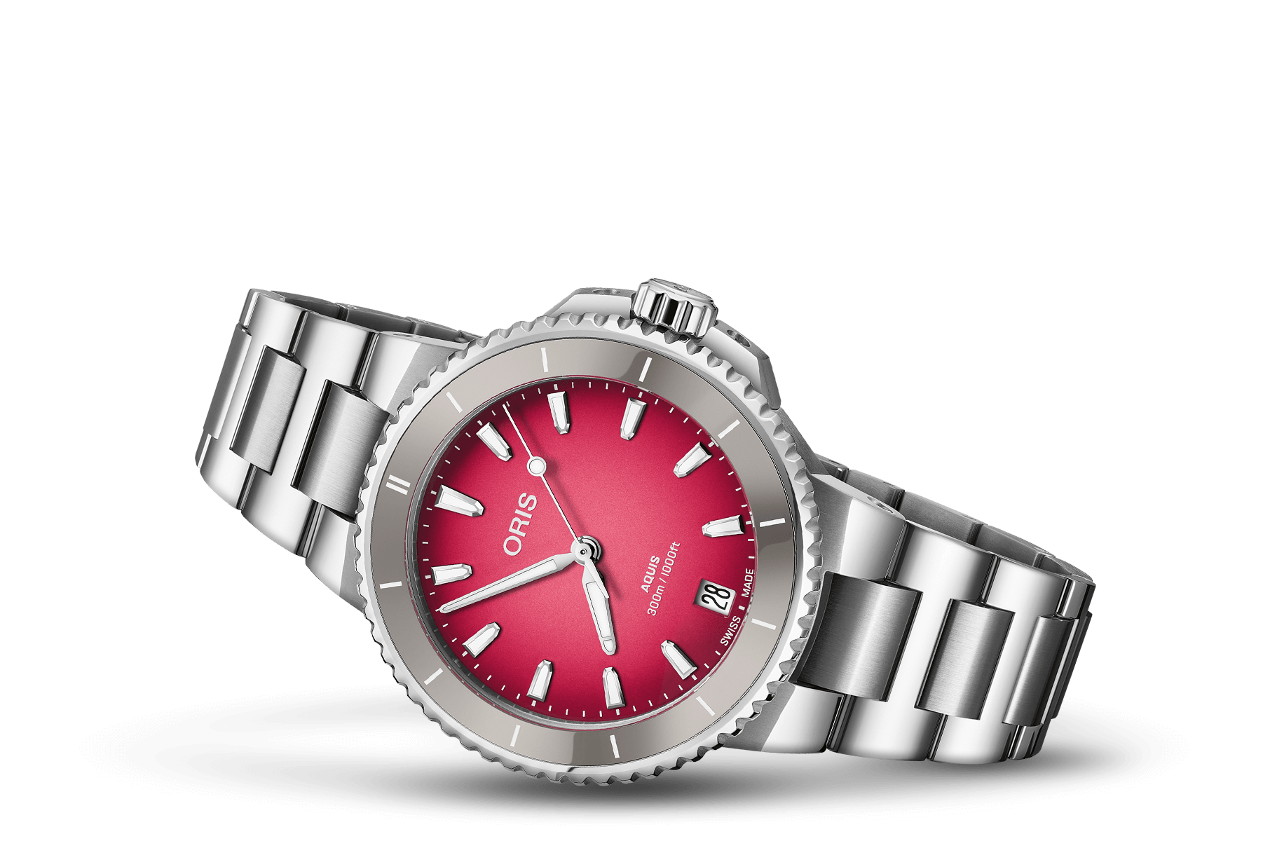 A sweet summer sunrise Back by popular demand! Meet this Aquis Date “Taste of Summer” 36.50 mm with a gradient sunrise red-pink dial. It has all the performance, versatility and style of our evergreen Aquis Date dive watch, only now with the echo of an endless summer.